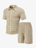 Lightweight and stylish two-piece set with short-sleeve shirt and shorts. Perfect for warm days, beach trips, or casual outings with comfort and modern style.